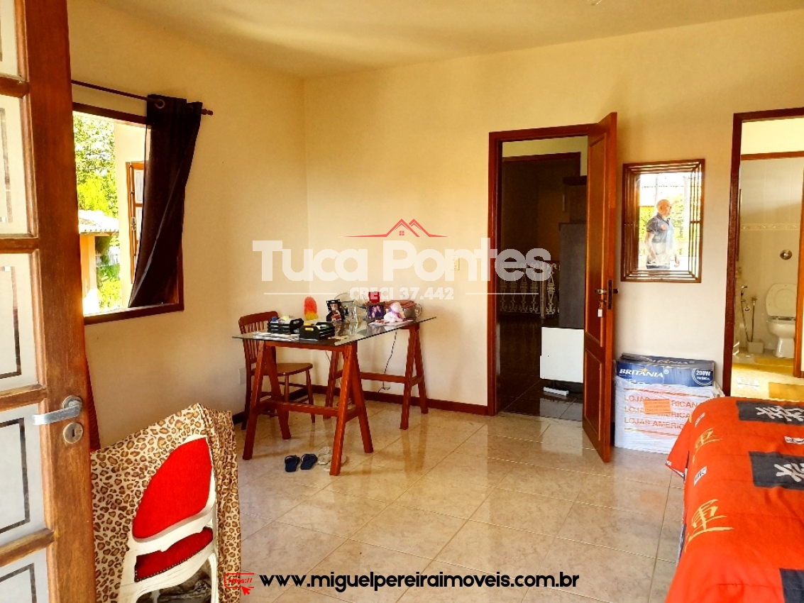 Casa com sala, 4 quartos sendo 2 suítes 1 bem ampla e com sacada com vista para o jardim, hall, banheiro social, cozinha americana, salão e varanda com vista para o jardim. Lavanderia externa.