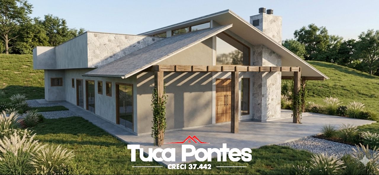 Raridade de casa nova à venda, onde você conta com arquitetura moderna e serrana, acabamentos de primeira qualidade em tons neutros, execelente tamanho e uma localização privilegiada.